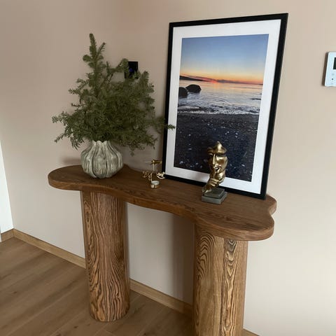 Fin hylla/sidobord i massiv ek färg grå c13 från Kristensen.