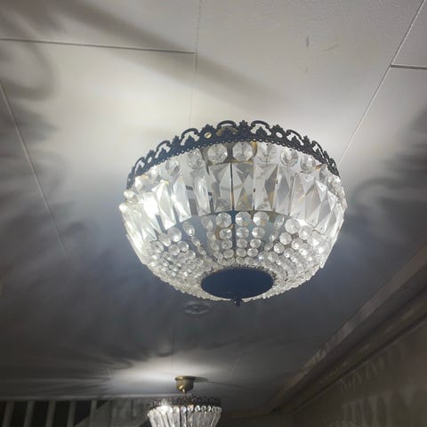 Snygg taklampa, 16 glaskupor inlindade i metallnät. Ledlampor.
