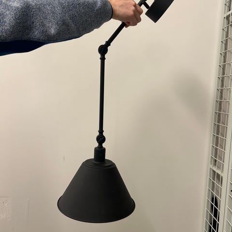 Svart vägglampa i metall. Justerbar i olika positioner.
