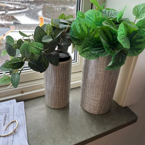 IKEA konstgjord blomma i kruka i lila nyanser. Växten står i en mörk kruka och föreställer en blommande örtväxt. Passar som dekoration i fönster, på bord eller hylla inomhus. Enkel att sköta då den inte kräver vattning eller särskild skötsel.