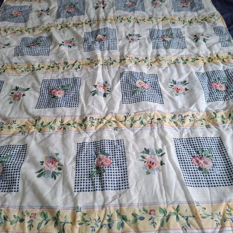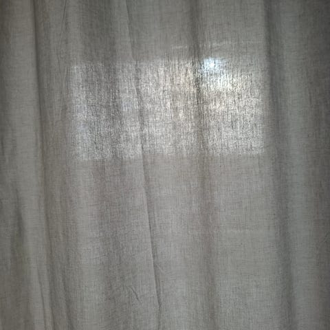 Draperiet är ca 180cm bred och 200cm hög. Draperiet har 12 plastöglor för att kunna hängas på stång.