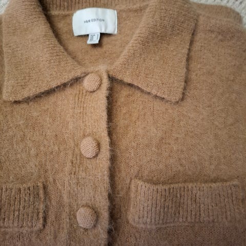 Dagmar tröja för dam i storlek M. Stickad modell i brun färg med rund halsringning och dragkedja bak i nacken. Skönt ocersize i modellen. Materialet består av 62 % mohair och 38 % polyamid, vilket ger en mjuk och något luddig struktur.