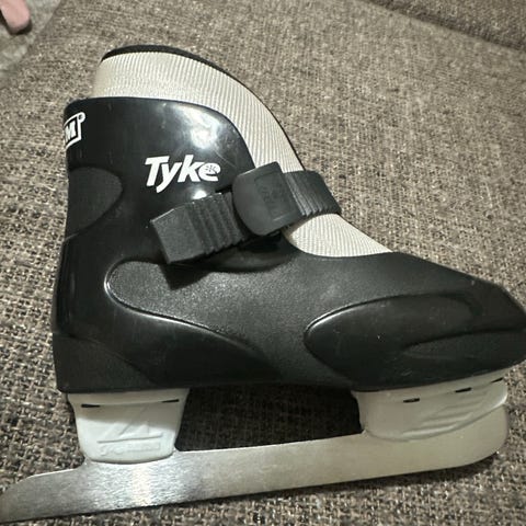 CCM Tyke ishockeyskridskor för barn i storlek 30-32, innermått 18,9cm. Skridskorna är svartvita med justerbart spänne över foten för bättre passform. Modellen är avsedd för allmän skridskoåkning för barn. Bladen är i metall och kängan har en stabil konstruktion som ger stöd runt fotleden vid åkning på is.