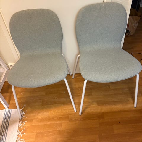 Karlpetter IKEA stol i ljusgrön klädsel och vit stomme (utgår inom kort från sortimentet).