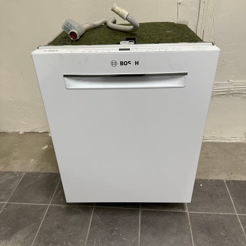 Bosch underbyggd diskmaskin. 60cm bred. Maskinen är avsedd för inbyggnad under bänkskiva. Fronten har panel med display och knappar för programval. Invändigt finns två korgar för tallrikar, glas och bestick samt bestickkorg i nederkorgen. Diskmaskinen har rostfri botten med Zeolith-torksystem enligt märkning.