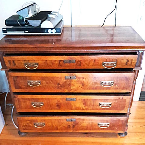 Antik byrå med lådor ljusgrå