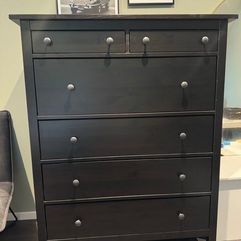 Ommålad grön IKEA Hemnes byrå med 6 lådor.