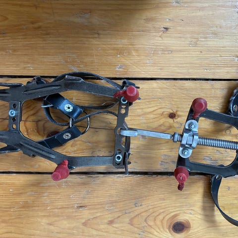 Grivel G14 - professionella stegjärn i gul färg med remmar och metalltaggar för användning på is och snö eller tekniskt mixed klättring. Passar för montering på kängor med fram- och bakkant för stegjärn. Lämpliga för vintervandring, is- och snöförhållanden där extra grepp behövs. Justerbar längd med mittskena och remsystem för att anpassa passformen efter skostorlek. NP >2500kr Märke: https://grivel.com/collections/crampons