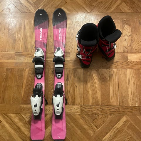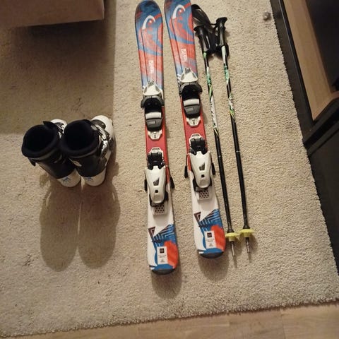 Skidor barn 80 cm och pjäxor 18,5