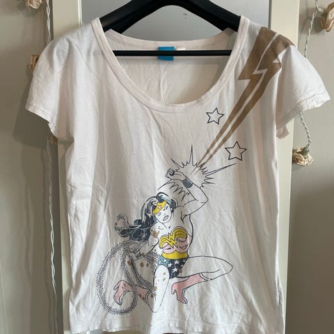 Detta är en vit t-shirt från märket Basic you med ett tryck som lyder "Oh the weather outside is frightful but this fabric is so delightful and since we've no place to go let us sew... let us sew... let us sew....".