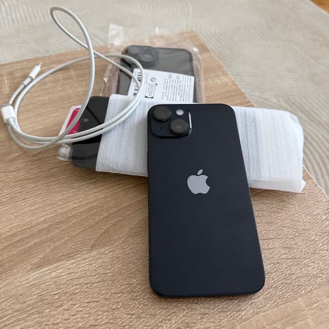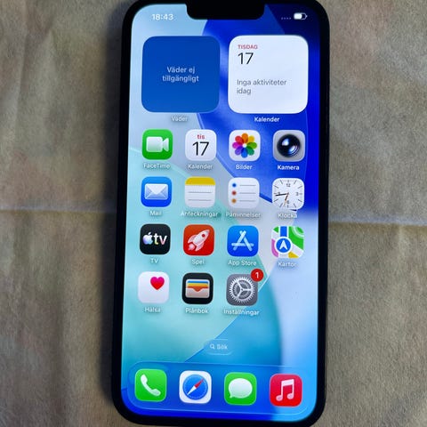 Säljer min iPhone 14 med 128 GB lagring i mörkblå färg. Telefonen är i mycket fint skick, inga repor på glaset eller baksidan och inga synliga skador. Batterihälsan är 92%.