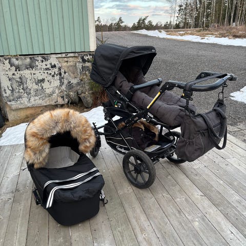 I priset ingår även footsack, skötväska och regnskydd och extra myggnät.