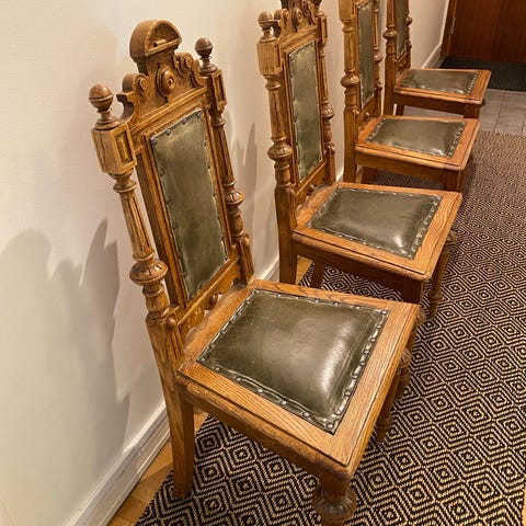 Tygerna till dynorna är hemvävda ca 100 år efter att stolarna tillverkades.