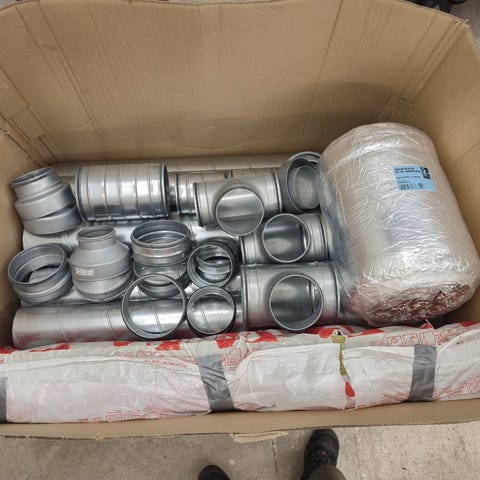 Finns nya filter och en massa rör. Vissa isolerade. Även till/frånluftsdon som medföljer vid intresse.