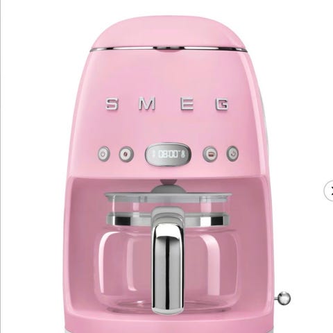 Smeg kaffebryggare i rostfritt stål. Droppbryggare med glaskanna och värmeplatta. Övre lock öppnas för påfyllning av vatten och filter. Passar för bryggning av kaffe i hemmet.