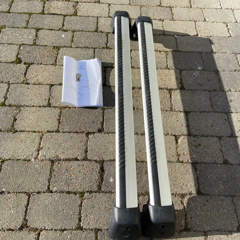 Thule takräcken i aluminium med svarta plastfötter och silverfärgade lastbågar. Passar som bas för montering av exempelvis takbox, cykelhållare eller annan taklast. Levereras som ett par lastbågar.