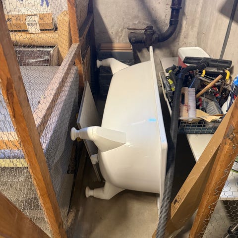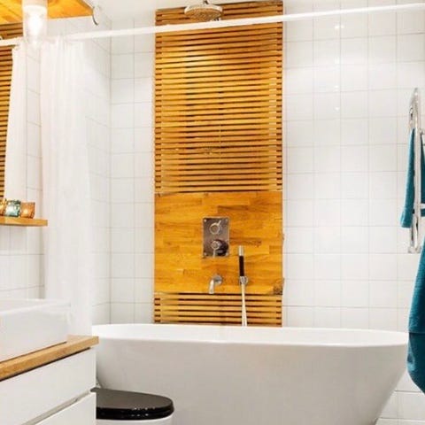Badkar i vitt utförande. Rektangulär modell med slät insida och avrundade hörn. Badkaret är fristående på ben/stativ vilket ger utrymme under för rördragning eller städning. Utrustat med bottenventil/avlopp i ena änden. Passar för installation i badrum med väggmonterad blandare och dusch.
