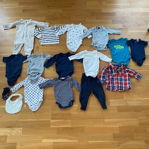 Stort klädpaket baby i strl 62, finns något enstaka plagg i dubbelstrl i 62/68.