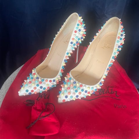 Prada klackskor i storlek 38.5 Svarta högklackade skor med öppen tå och kraftig klack. Modellen har rem runt hälen med spänne för justering. Ovandel i svart material med utskurna detaljer. Passar till exempelvis fest eller mer uppklädda tillfällen. Supersnygga och jättesköna!