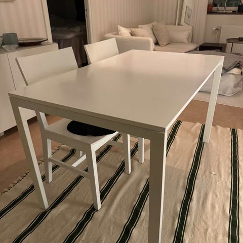 Vitt Vihals köksbord från ikea i storleken 125x74 cm. Två små svarta märken i bordskivan, se bild. Annars mycket fint skick! Bordet är köpt för 2 år sedan.