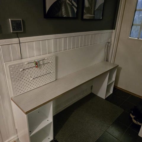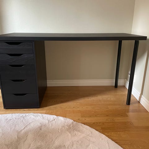 Säljer mitt vita skrivbord från IKEA. Sladdhållare baktill. Något litet märke men går säkerligen bort om man skrubbar.