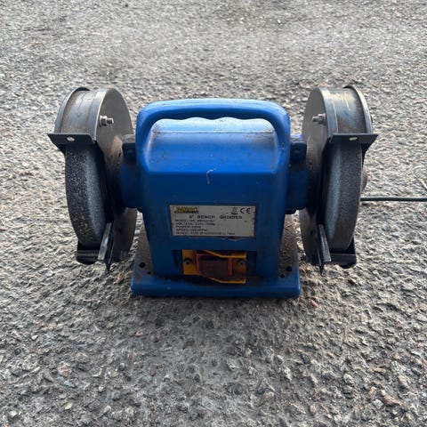 Pattfiled bänkborrmaskin med tillhörande skruvstycke. Maskinen är avsedd för borrning i metall, trä och plast i verkstad eller hobbybruk. Reglage och strömbrytare sitter på frontpanelen. Arbetsbordet är justerbart i höjdled och skruvstycket håller arbetsstycket stabilt vid borrning. Maskinen står på en stadig fot för placering på bänk eller stabilt underlag.
