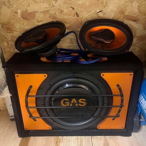6,5 tum midbasar från gas med bra tryck! Perfekt för raggarplankan eller dörrarna. De två högra slutstegen följer med på dista bilden. Dörrarna som de sitter i kan även fås med