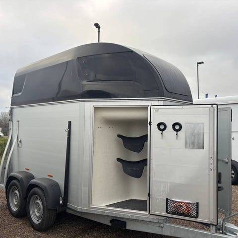 Mycket fin och välbevarad hästtransport med alu/kompositgolv, trailercam och dubbdäck, sadelkammare