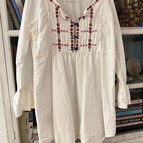 Klänningen är använd vid några enstaka tillfällen och säljes i mycket gott, men använt skick och små skavanker kan förekomma. Den är enbart använd av en person och den säljes självfallet nytvättad.