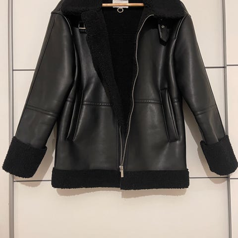 Cropped shearling jacket.