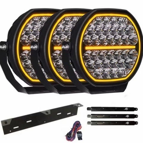 Ledforce LED extraljus 120W i runt utförande. Lamporna levereras i förpackning med flera individuella LED-reflektorer i varje enhet. På bilderna syns även kablage och monteringsdetaljer för inkoppling av extraljusen på fordon. Passar som extra belysning på bil eller annat fordon där förstärkt vägbelysning önskas. Effekt: 120W per lampa. Typ: LED extraljus, runt utförande.