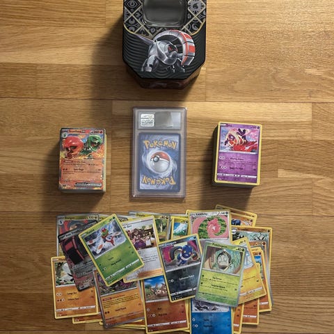 Säljer en fin Pokémon-samling med ca 300 kort från både äldre och moderna set/årtal. Perfekt för samlare eller dig som vill bygga upp en egen samling.