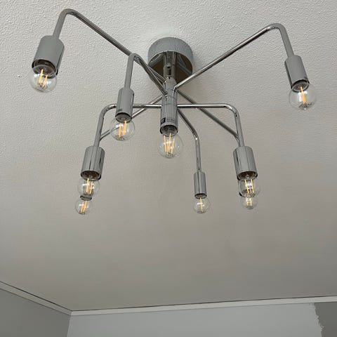 Taklampan Tage, med sitt varma och mjuka sken, passar i de flesta hem och inredningsstilar. Tage, med sina 9 glaskupor, är ett elegant inslag i rummet och samtidigt hemtrevlig. En eye-catcher som ger bra spridning av ljus i rummet. Lampan passar att hängas högre upp i vardagsrumstaket, i ett sovrum för ett mjukt allmänljus, eller över ett matbord där den tar för sig och blir ett uttrycksfullt blickfång