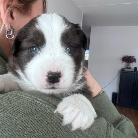 Våra fantastiska hundar Zoey och Xsantoz har fått valpar. 7 små superfina hanar. Zoey är ren bordercollie och Xsantoz är 50% bordercollie och 50 % blue merle mas. Inget vallbeteende men är aktiva så dom behöver mycket aktivitet för att må bra. Dom är födda 31 januari och är leveransklara 28 mars. Id märkta vaccinerade och veterinär besiktade. Skriv lite om er själva om hur valpen kommer få det och välkomna med frågor. Svårt att ta bra kort på dom men skriv om ni ser nån intressant så löser vi bilder och videos. 18000 kr