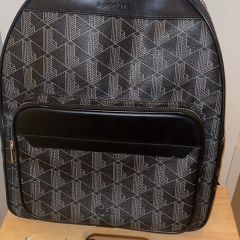 Lacoste axelremsväska i fuskläder för unisex. Väskan har ett mörkt mönstrat yttre med geometriskt tryck och justerbar axelrem. Lock med metallspänne framtill. Passar för vardagsbruk och förvaring av mindre personliga tillhörigheter som plånbok, mobil och nycklar.