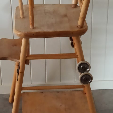 Vintage barnstol i trä, ombyggbar till bord och stol