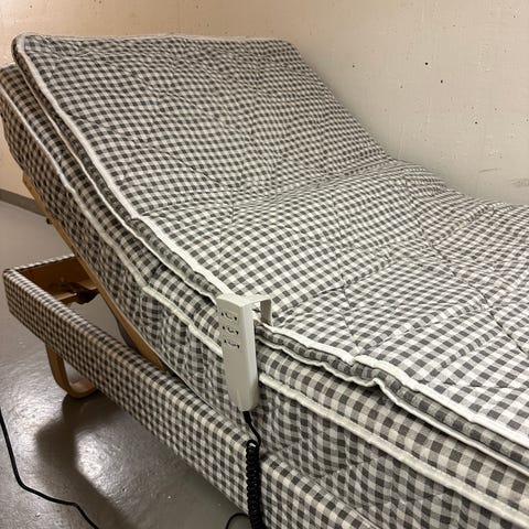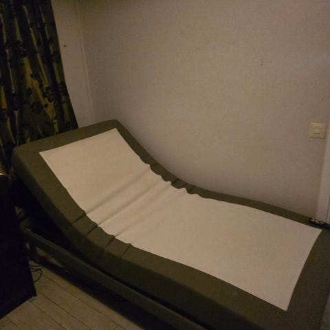 Jysk ställbar säng med madrass. Sängen har elektrisk ställbar funktion som justeras med fjärrkontroll, vilket gör det möjligt att höja och sänka huvud- och fotända. Madrassen är ljus med kontrasterande kantband och ligger i en mörk sängram. Passar som enkelsäng i sovrum eller gästrum där man vill kunna anpassa ligg- och sittläge. Elanslutning krävs för den ställbara funktionen.