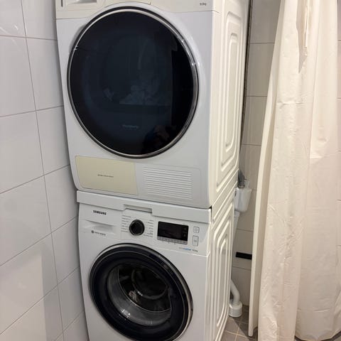 Båda maskinerna klarar av 9 kg var, är i ett gott skick och minimalt använda då jag bor själv.