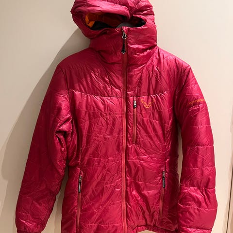 2117 of Sweden jacka i lila med lätt vaddering och quiltat mönster. Jackan har fast huva, hel dragkedja framtill och två sidofickor med dragkedja. Insidan är turkos med innerficka och meshdetalj. Modellen har resår vid ärmslut och något insvängd midja. Passar som ytterjacka i svalare väder. Storl 42