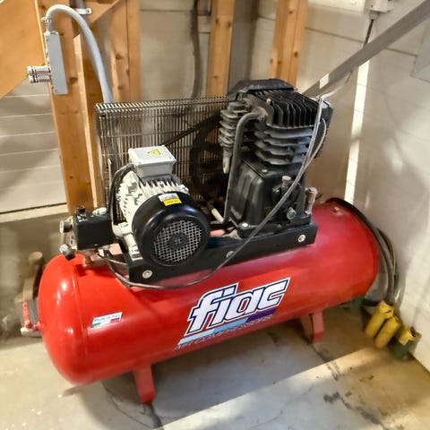 Professionell skruvkompressor FIAC CRS 15, komplett anläggning med integrerad lufttork (Dryer) och 300 liters trycktank. Byggd för kontinuerlig drift i verkstad, industri eller byggverksamhet.