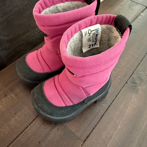 Vinterstövlar för barn unisex i lila med svart gummisula. Stövlarna har ovandel i syntetmaterial med dragsko upptill och kardborreband över foten för justerbar passform. Grovmönstrad yttersula i gummi ger grepp på hala underlag. Invändigt finns mjuk textilfodring för extra värme. Passar för vinterlek och vardagsbruk i kallt väder.