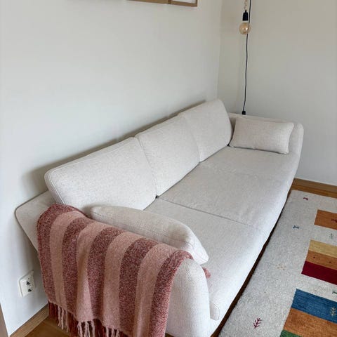 Snygg modern soffa av Jacques Deneef för Ethnicraft som är riktigt bekväm. Beige färg utan synliga ben som gör att den ”flyter” på golvet.