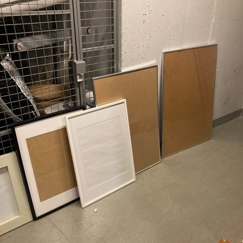 Komplett tavelvägg med ramar.