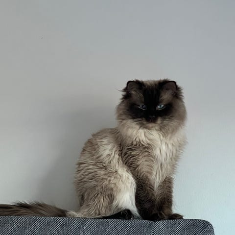 Hej! Detta är en hane Ragdoll och är 6 månader gammal. Han är inte kastrerad och vaccinerad. Han älskar att umgås med människor, är jättetrevligt och älskar att leka.