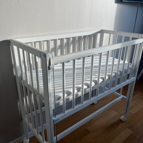 Troll bedside crib spjälsäng vit trä