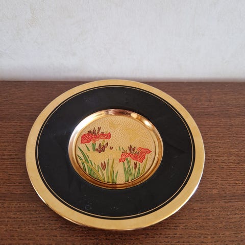 Vackert handmålat espresso-/mokkaset från Thailand med detaljerat mönster och guldfärgade dekorationer.