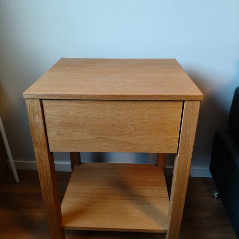 I serien ingår Sänggavel för 180 cm bäddmadrass, (bäddmadrass kan ingå). Bordslampa, väggspegel, stol. Allt detta i gott skick. Därtill ett Sängbord, slitet.