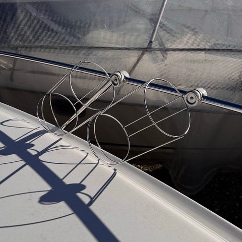 Stora fendrar from amerikanska Polyform, modell F3. Vita med blåa ändar. Storlek: längd 75 cm, omkrets 70 cm. Sparsamt använda och i gott bruksskick. Förvarande inomhus på vintern. Fem stycken. Köpare som tar alla har företräde. 450 kronor styck. 2 000 kronor för alla fem.