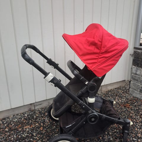 Skick: Bra skick. Sufletten något solblekt. Handtaget/bågen till liggdelen är lite trög att ta bort och vagnen är något trög att fälla ihop, men allt fungerar som det ska.