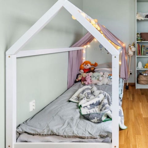 Hussäng som vi byggt själva. Passar för madrass med måtten 90×200. Ena sidan monteras av vid flytt.